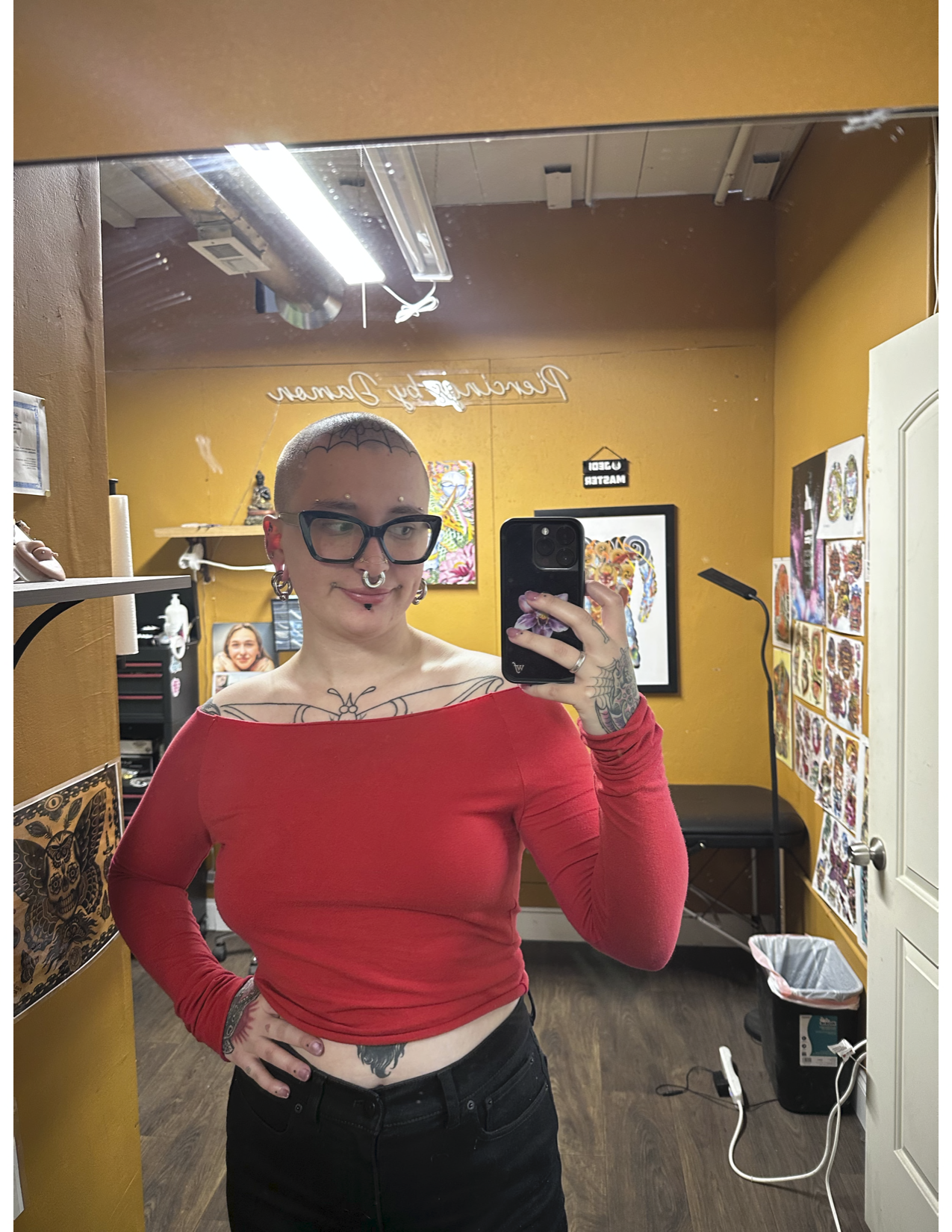 I love performing helix piercings and I cannot wait to learn how to do nostrils and other facial piercings. My favorite piercings on myself are my dahlias and my stretched septum which is currently at 7.5mm. My ears are also stretched to a 21mm. Without those piercings, I wouldn’t be myself!